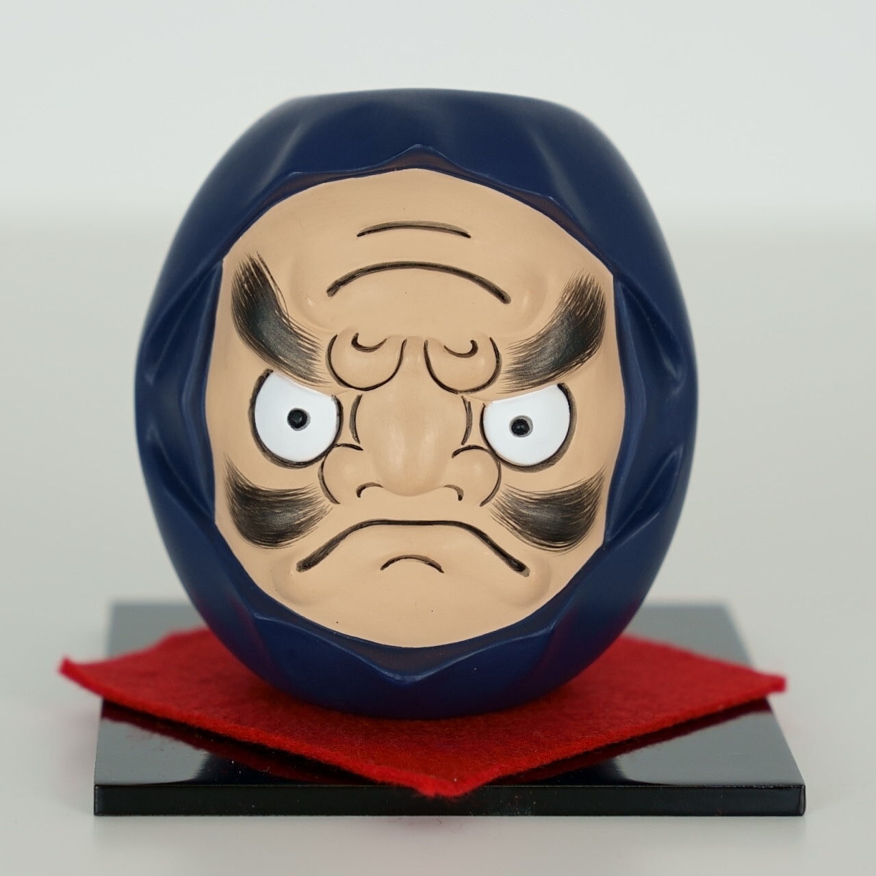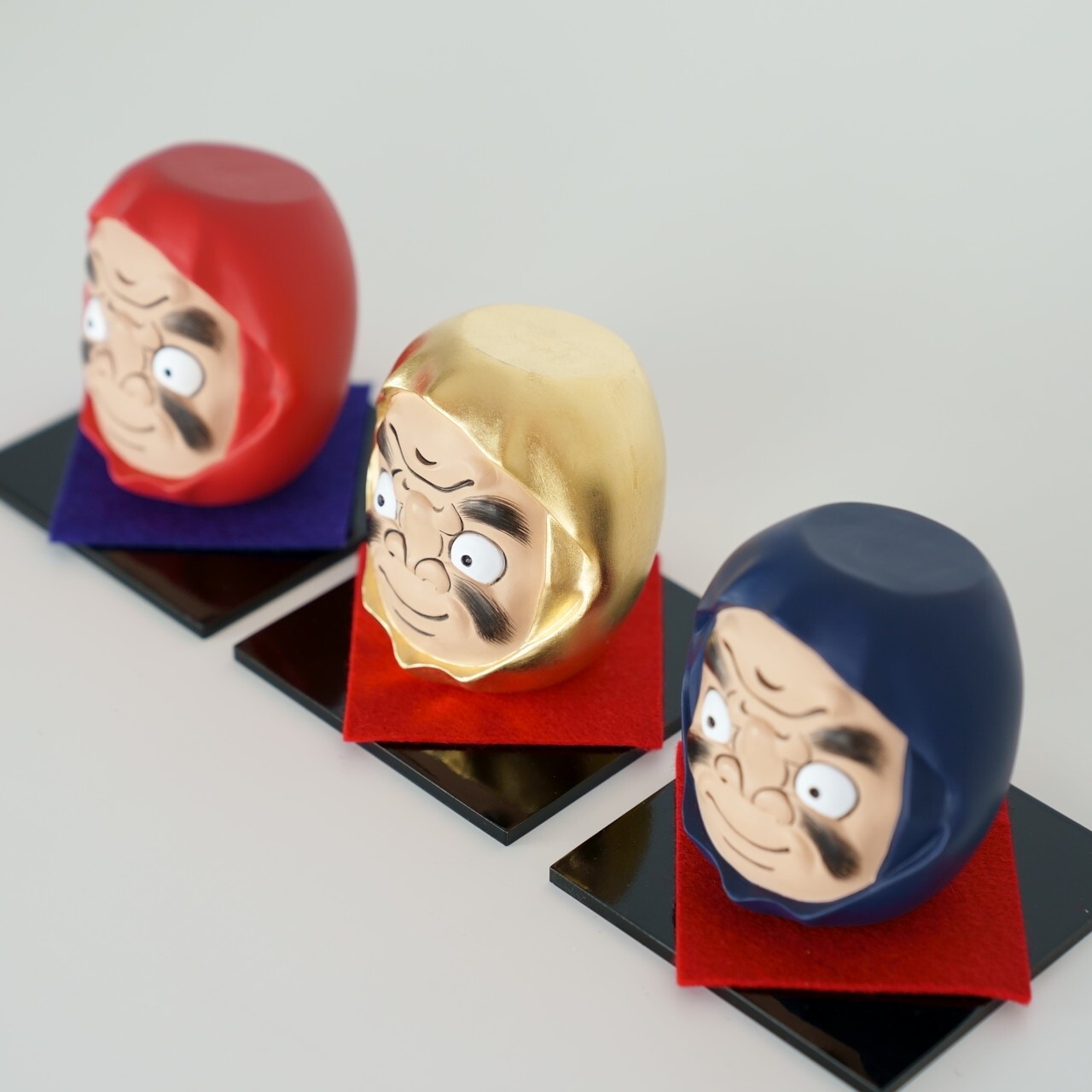 上下逆さまにしても『だるま』の顔になるユニークな縁起物。見て楽しめるトリックアートのような立体作品を作りたいと思い試行錯誤の末、手に取ってひっくり返して楽しめる「だるまるだ」が完成。達磨大師の教えのように不屈の精神で頑張る時もあれば、笑顔になれる時もある。今日のご機嫌で顔を変えたり、目標達成したら笑顔に変えたり、それぞれの使い方で楽しんでください。